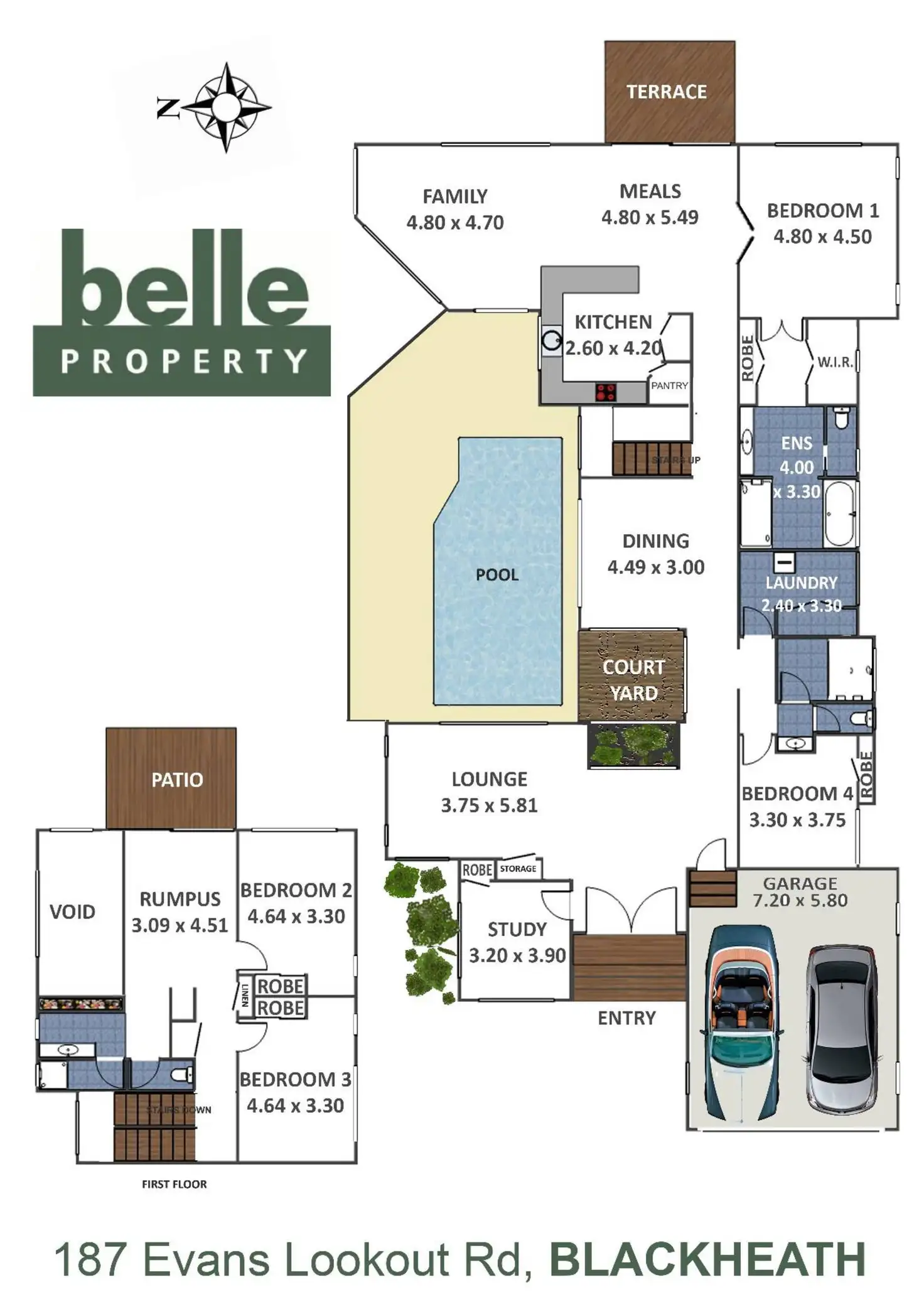 There are four bedrooms, with a bathroom off the guest bedroom, another bathroom servicing the two bedroom upstairs and the master bedroom featuring a skylight, walk through robe and ensuite with double spa bath and double shower .