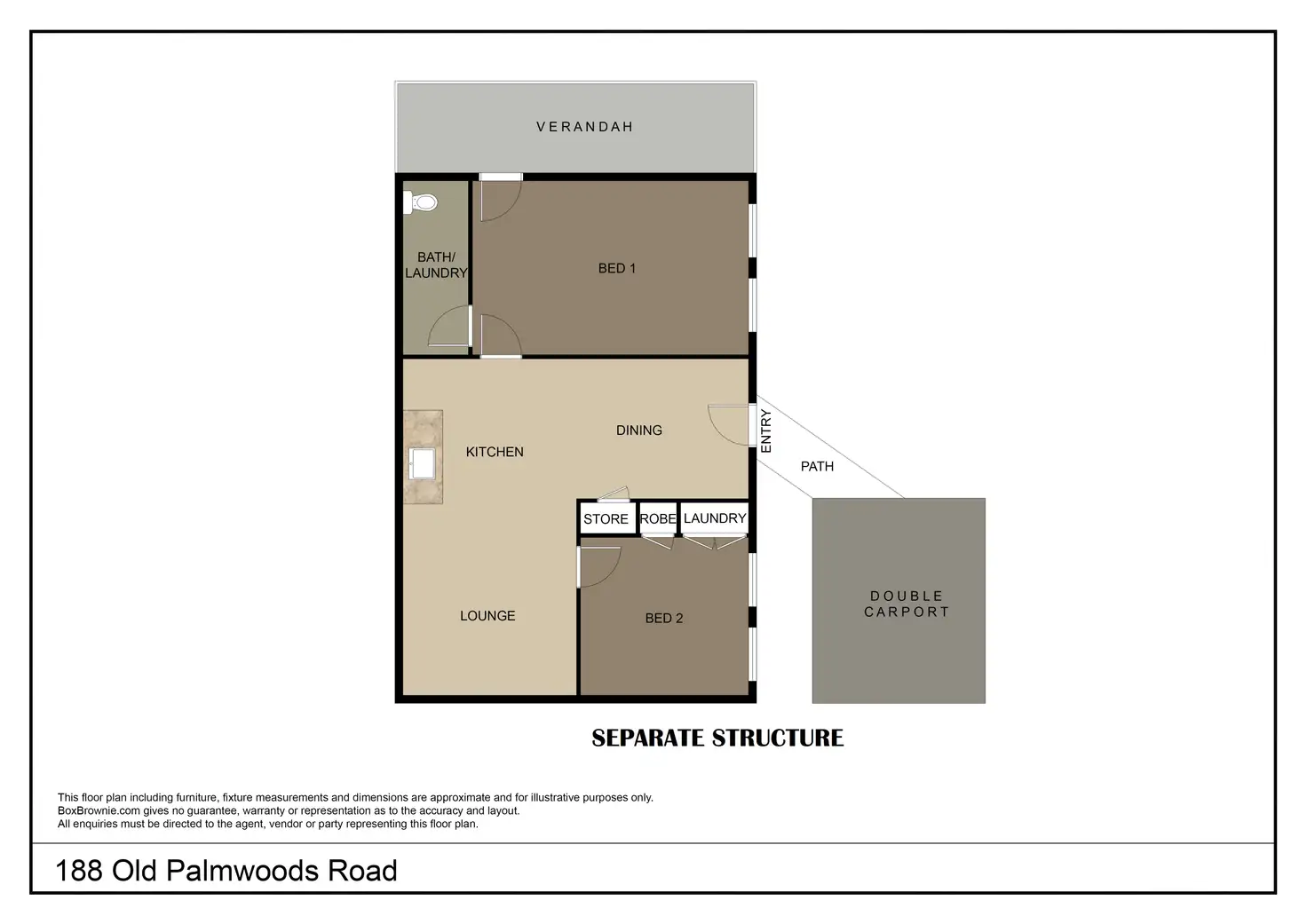 Situated at the rear corner of the property approx. 40 metres distance from the principal residence is a quality, stylish, multi-purpose, separate structure – offering a diverse range of useage options. This structure has its own tank water supply, waste water treatment system and double carport parking.