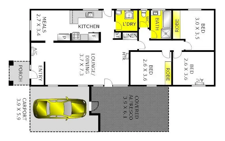 3 Bed • 1 Bath • 1 Car • 334m²