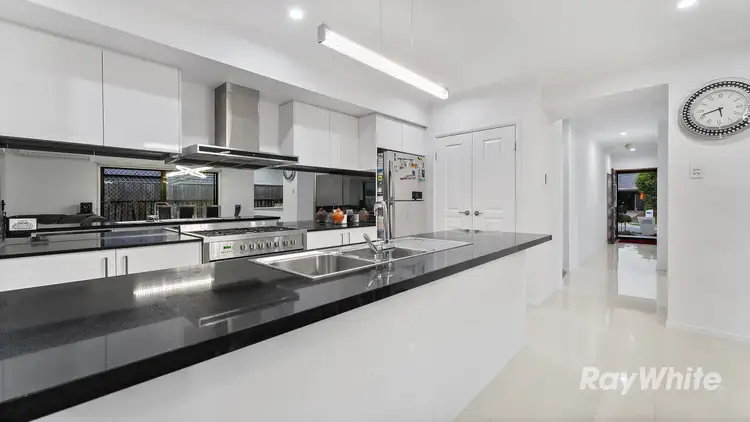 The striking modern facade of this premium family home, combined with a beautiful low-maintenance garden and manicured lawn, create an incredible first impression. Step through the wide timber feature entrance door and you are greeted by premium 600mm floor tiles leading to the stunning kitchen and large open plan main living area.