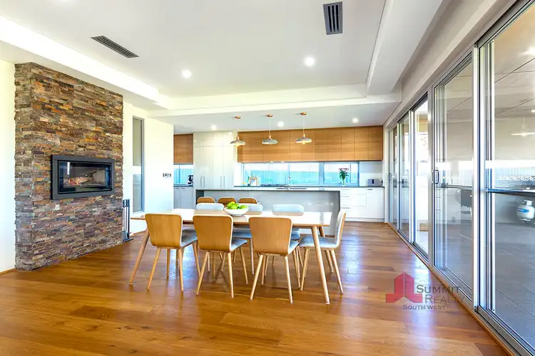 • The main living area is the ultimate in seamless indoor/outdoor entertaining with stackable doors between the two areas. Inside you will find cleverly recessed blockout and sheer curtains. A stone fireplace houses the built in fire which is ducted throughout the home as is the evaporative air conditioning.