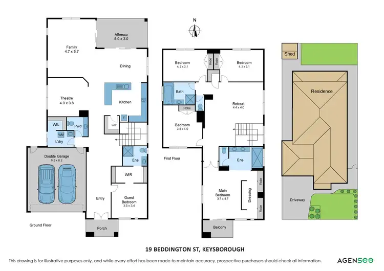 Step into the ground floor where timber flooring, large windows, and an open-plan layout create a warm, welcoming ambiance. The sleek kitchen is equipped with an extra-large stainless-steel gas cooktop and oven, complemented by ample storage, including a walk-in pantry. The kitchen and dining area seamlessly flow to the alfresco space, perfect for outdoor entertaining, and adjoin a spacious family room for relaxed gatherings. The ground floor offers a stunning guest bedroom with a walk-in robe and ensuite, providing privacy and comfort for visitors, a home theatre room, ideal for movie nights or entertainment, full laundry with extra storage and a designated linen area and a convenient powder room for guests. Ascend to the plush carpeted second floor, where you’ll find the luxurious master suite. This