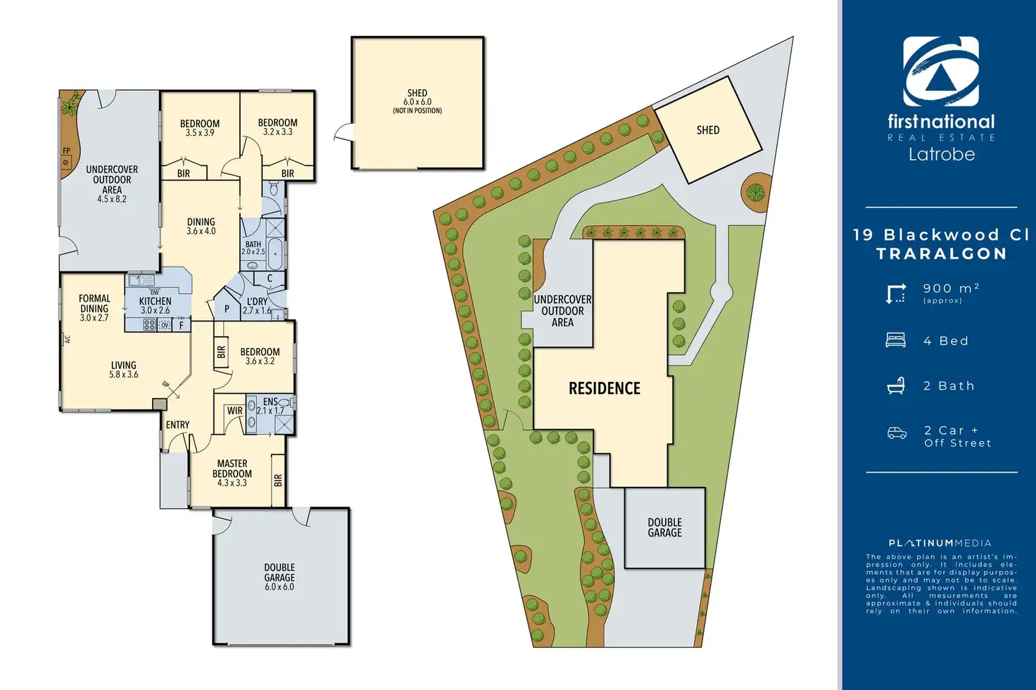 4 Bed • 2 Bath • 2 Car • 900m²