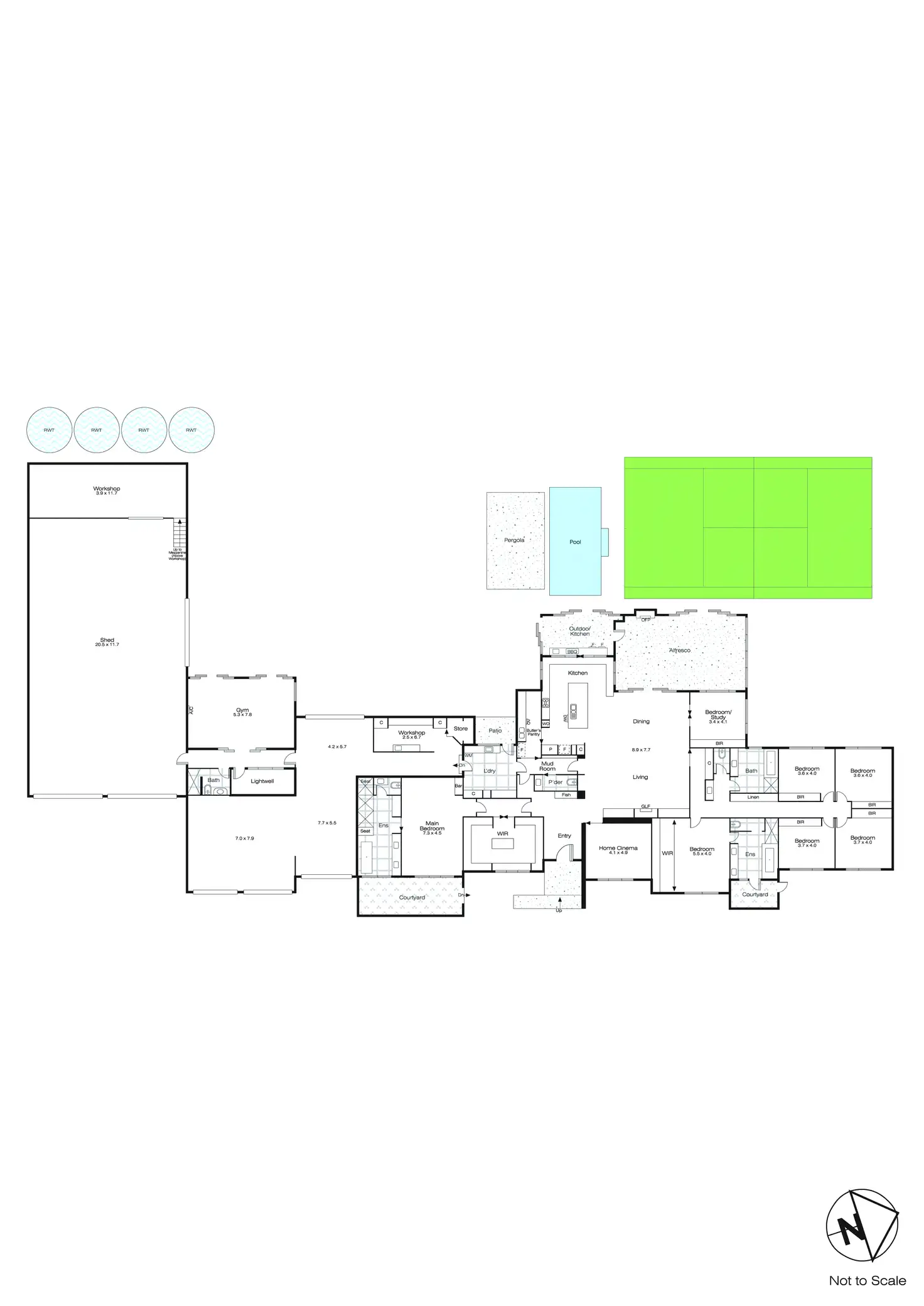 The outdoor area is nothing short of spectacular, with a fully enclosed alfresco space that seamlessly connects to the interior, ideal for year-round entertaining. Step outside to enjoy the expansive grounds, set on a massive 4103m² allotment, where you’ll find a deluxe in-ground pool and a full-sized tennis court – perfect for relaxation, fitness, or hosting summer parties. The property also features large, high-quality shedding for all your storage needs or hobbies, as well as being fully fenced and gated for added privacy and security.