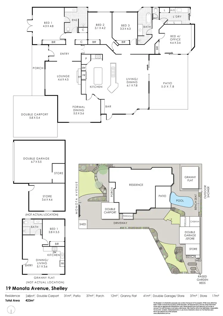 - 4 bedroom, 2 bathroom Main Residence (approx. 248m2 of internal living)
