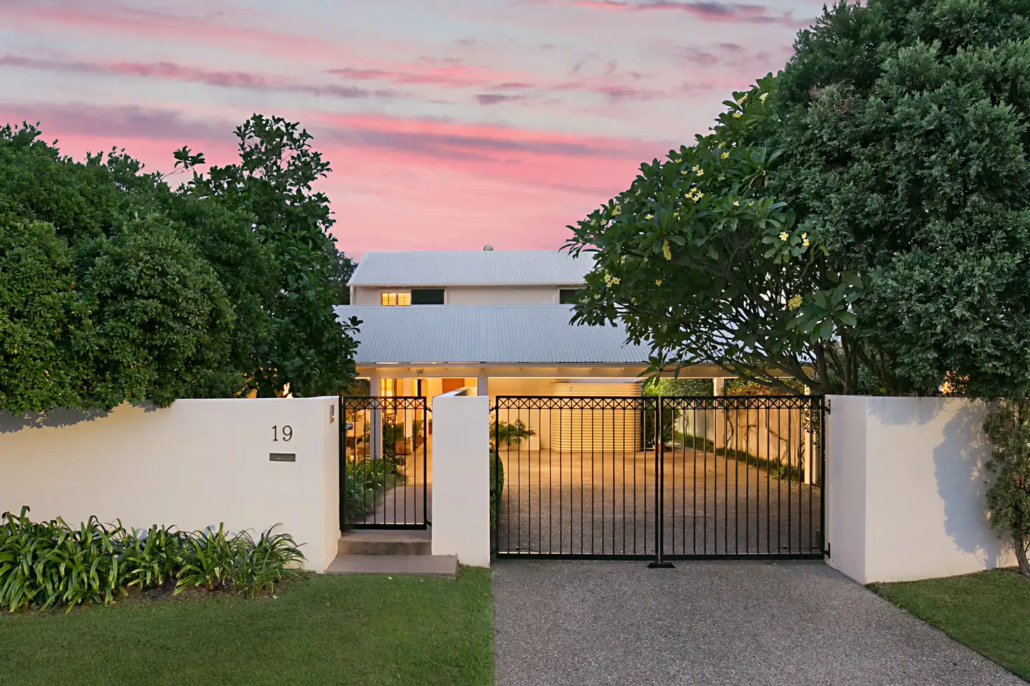 The wide frontage has allowed the flexibility for a stunning long, wide entry pathway that beckons past the paved , covered outdoor entertainment courtyard and on beyond the water garden to the impressive, solid timber front door and tall glass French doors offering glimpses of the stylish living on offer.