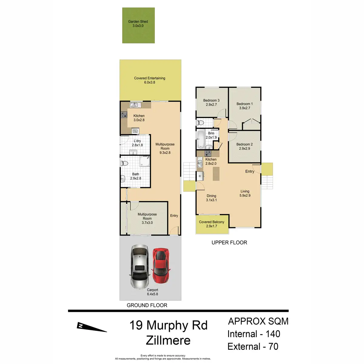 • 2 vehicle carport + side access
