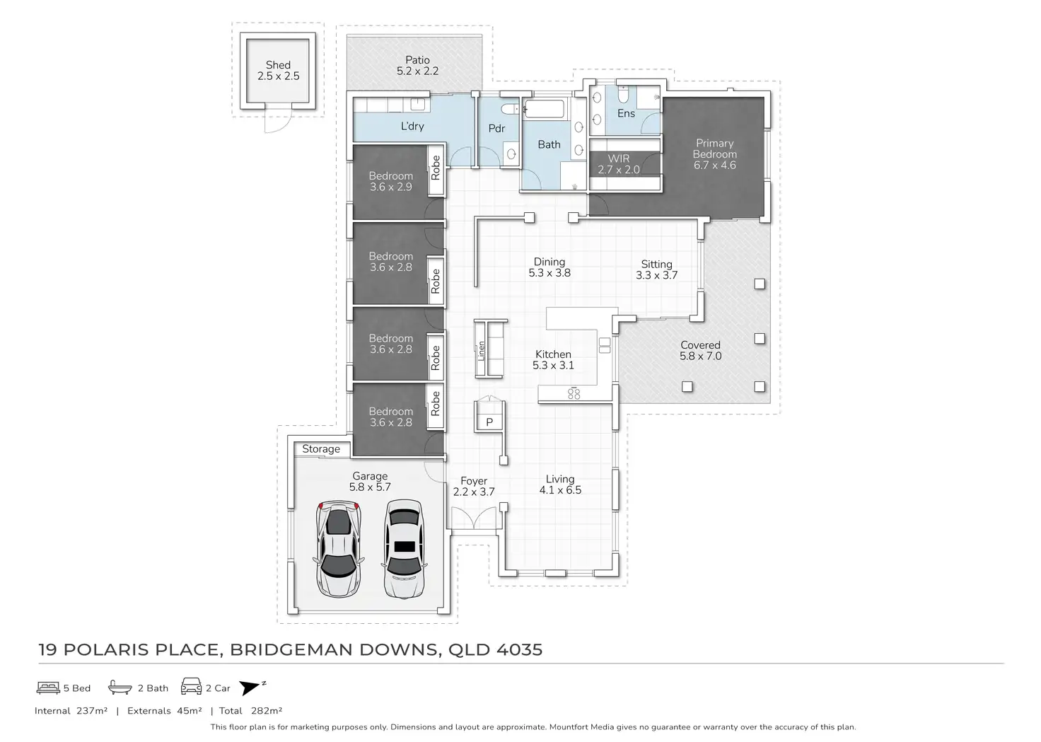 5 Bed • 2 Bath • 2 Car • 619m²
