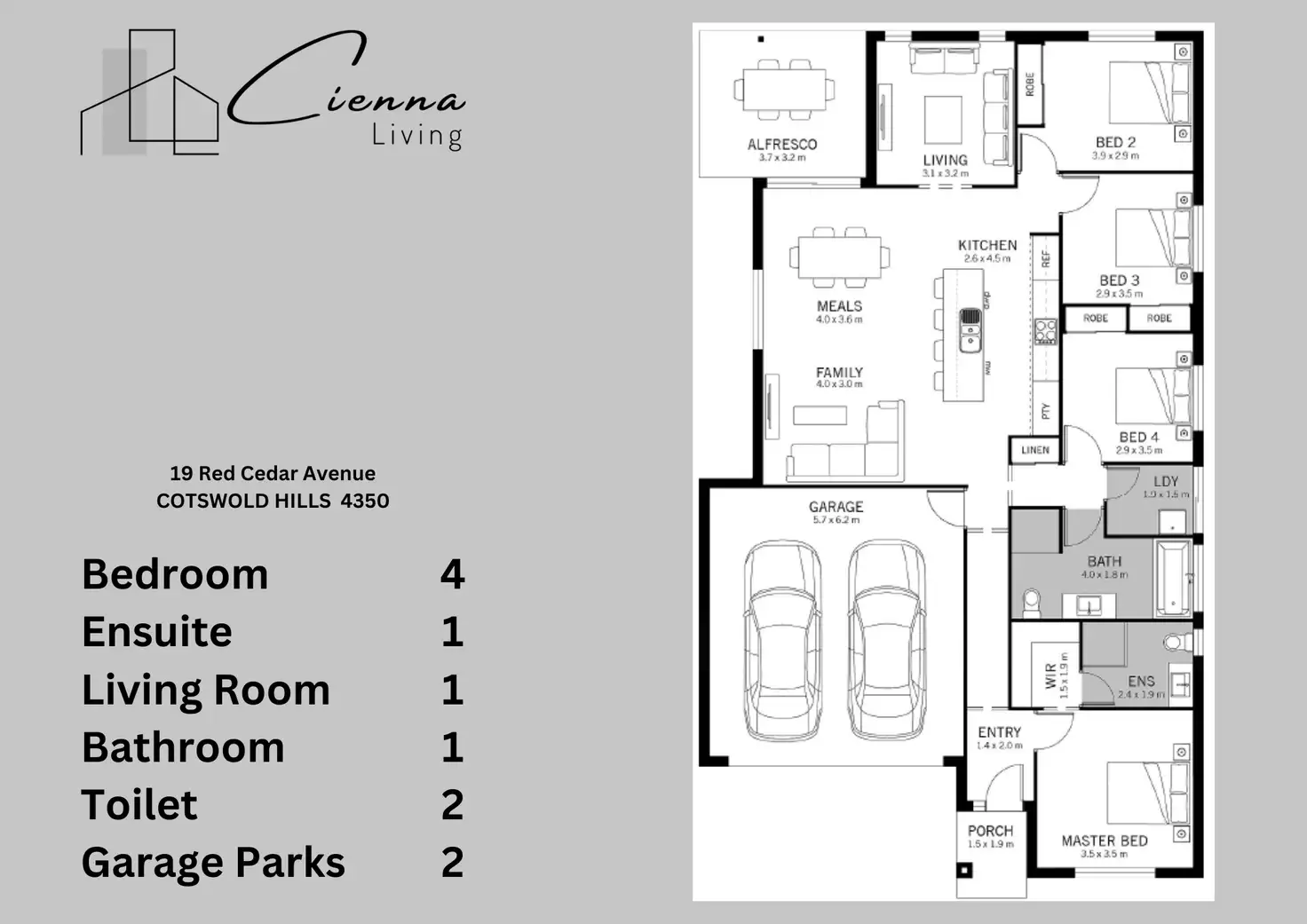 4 Bed • 2 Bath • 4 Car