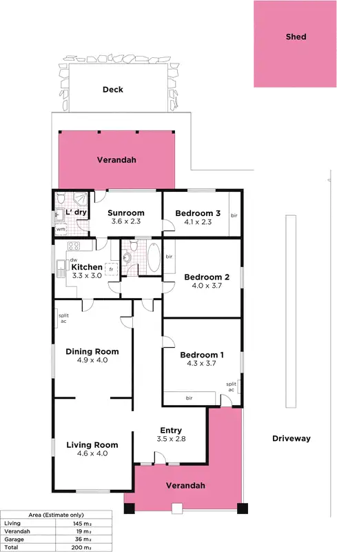 3 Bed • 2 Bath • 2 Car • 722m²