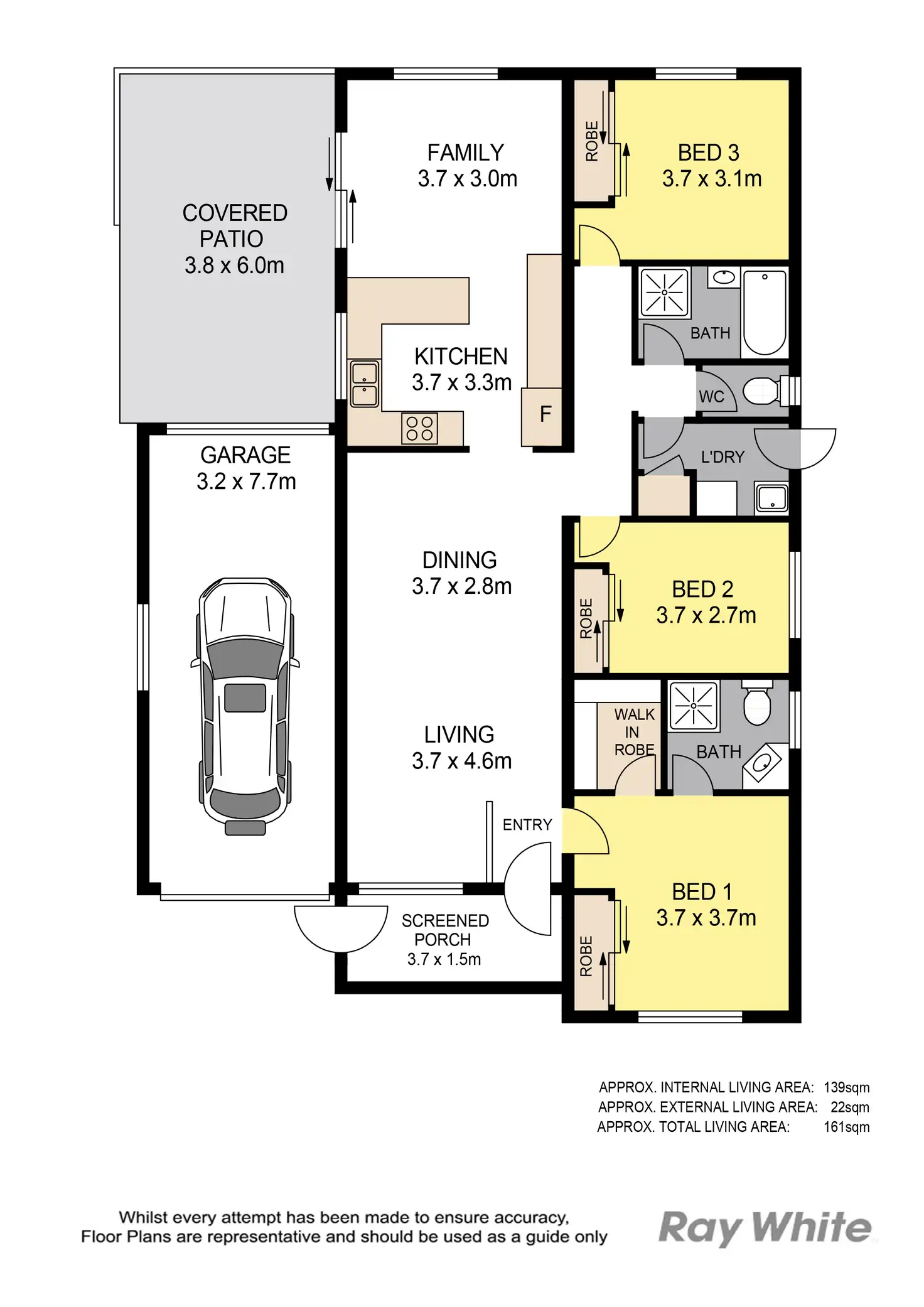 • Three generous bedrooms with built-in robes