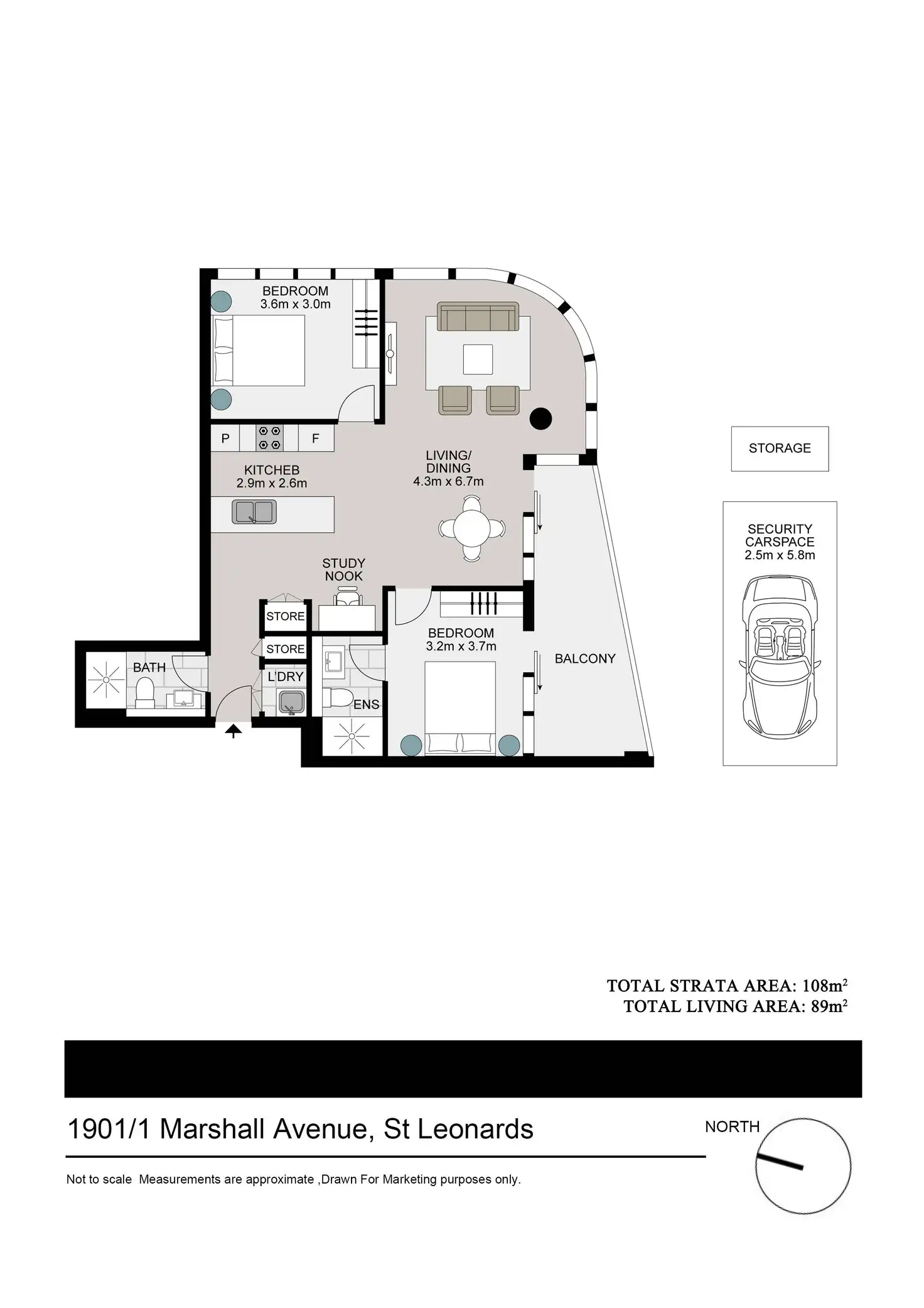 2 Bed • 2 Bath • 1 Car • 108m²