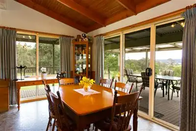Property Type: Acreage/semi rural, House Construction: (Hardi Plank) Joinery: Timber Roof: Iron Insulation: Walls, Ceiling Walls / Interior: Gyprock Flooring: Carpet Window coverings: Blinds Kitchen: Original, Open plan, Separate cooktop, Separate oven, Rangehood, Double sink, Pantry and Finished in (Laminate) Living area: Open plan Main bedroom: Double and Walk-in-robe Bedroom 2: Double and Built-in / wardrobe Bedroom 3: Double and Built-in / wardrobe Bedroom 4: Double Main bathroom: Bath, Separate shower Laundry: Separate Workshop: Separate Views: Bush, Private, Rural Aspect: East Fencing: Fully fenced Land contour: Sloping Grounds: Tidy Sewerage: SepticInteractive media & resources