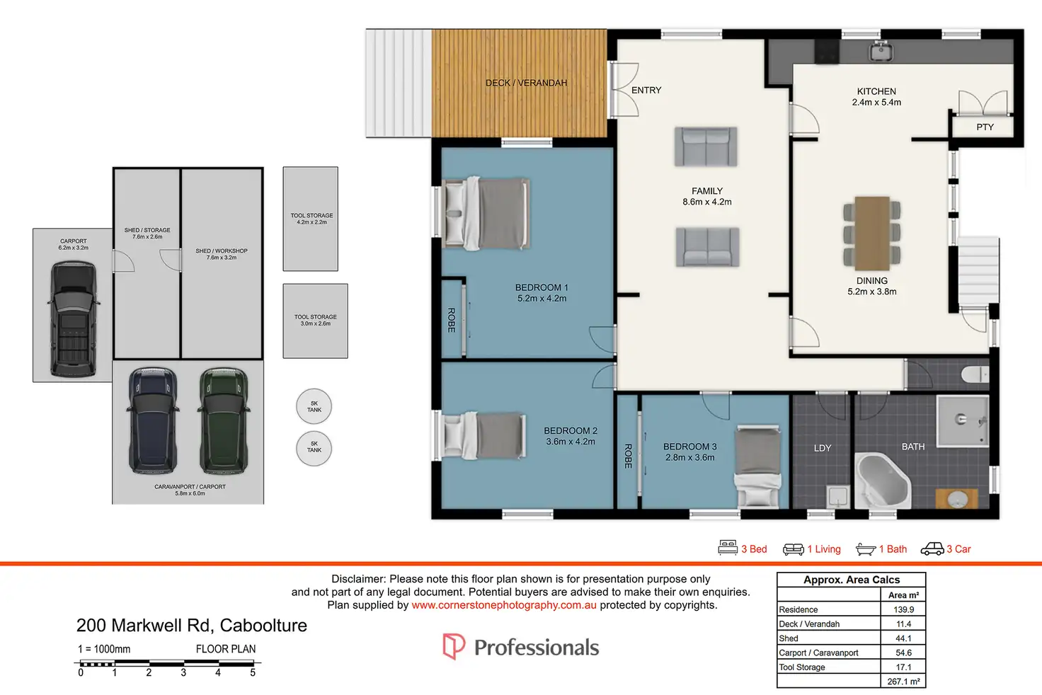 3 Bed • 1 Bath • 4 Car • 5372m²