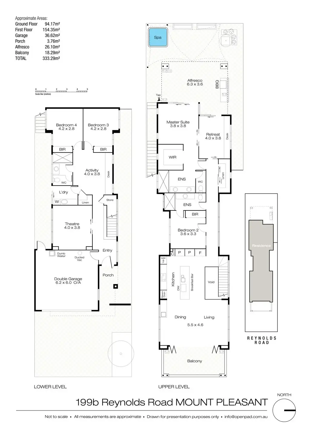 Also situated on the upper level is a large storeroom and a versatile second study / office area, with built in desk, wall-mounted TV and stacking glass sliding doors opening to the outdoor alfresco area. The master is separated from the office with double cavity sliding doors, which can be opened to create an enormous open suite for your personal use, or discretely closed for privacy when entertaining. The rear alfresco provides a fabulous private space which can be maintained with a minimum of fuss, while incorporating premium features for the avid entertainer. Enjoy barbeques with friends and family in the undercover Alfresco area with raked cedar-lined ceiling and built-in stainless steel barbeque, kick back surrounded by easy care garden beds and stylish natural stone and metal feature walls, with shade sails to protect from the summer sun, or relax with a glass of wine in the fabulous 5 seater outdoor spa and let the worries of the day drift away.