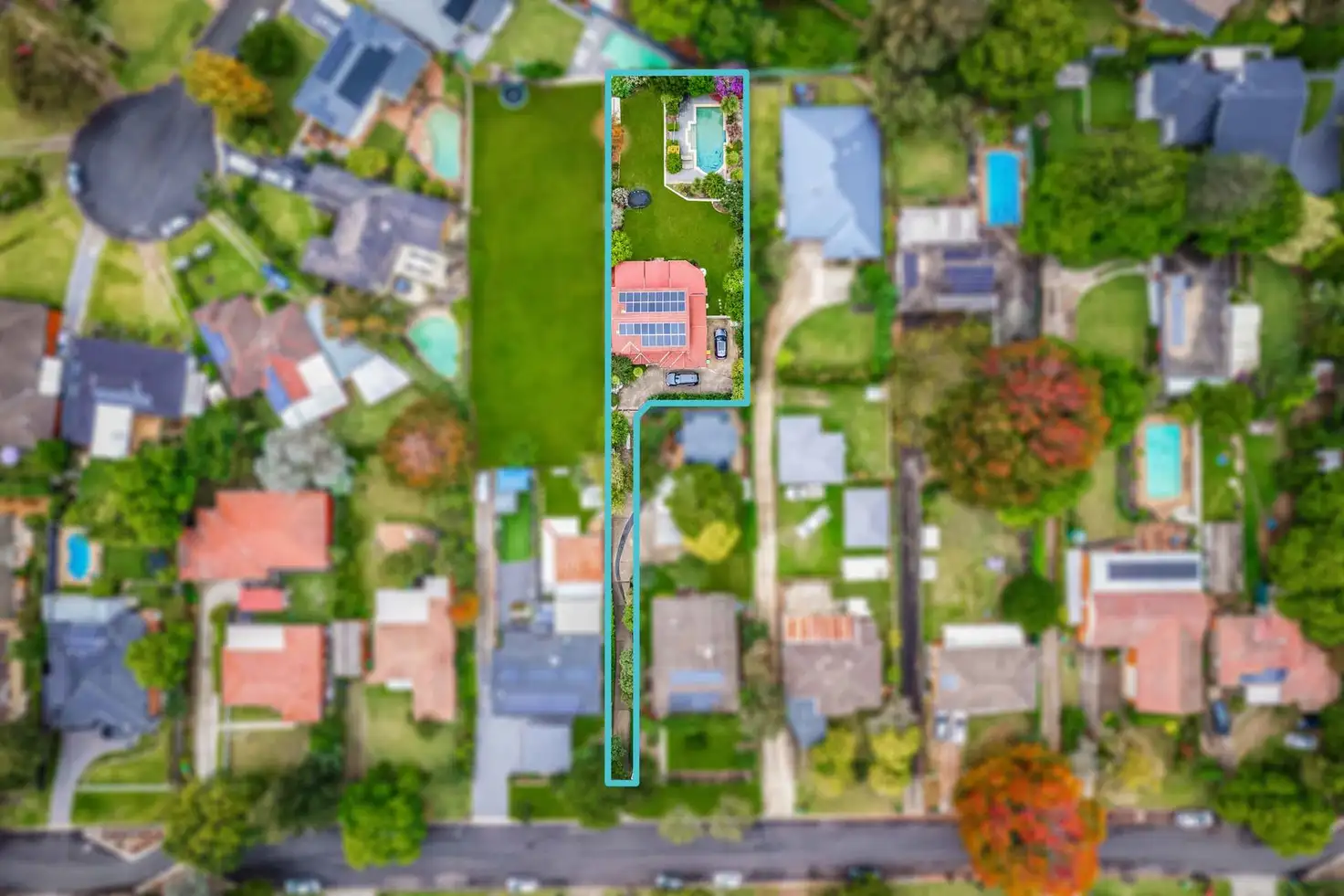 • Extensive backyard with sparking in-ground swimming pool, cubby house and abundance of grassed area that is surrounded by manicured garden beds, and solar panels