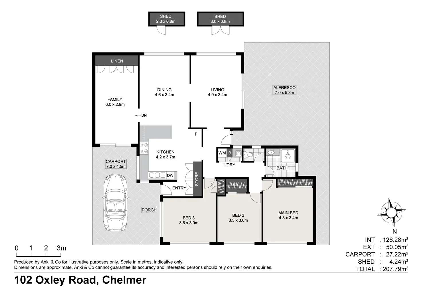 - Single carport and 2x garden sheds