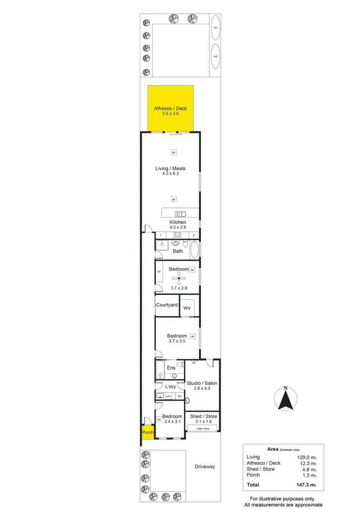 Offering three bedrooms, a central courtyard for your morning coffee and an excellent studio room plumbed and powered and ready to go, where business owners can let their dreams run wild. The heads of the household will enjoy the generous master suite complete with a large walk-in wardrobe and a chic ensuite where the stresses of the day will melt away as you unwind beneath the large walk-in shower and skylight.