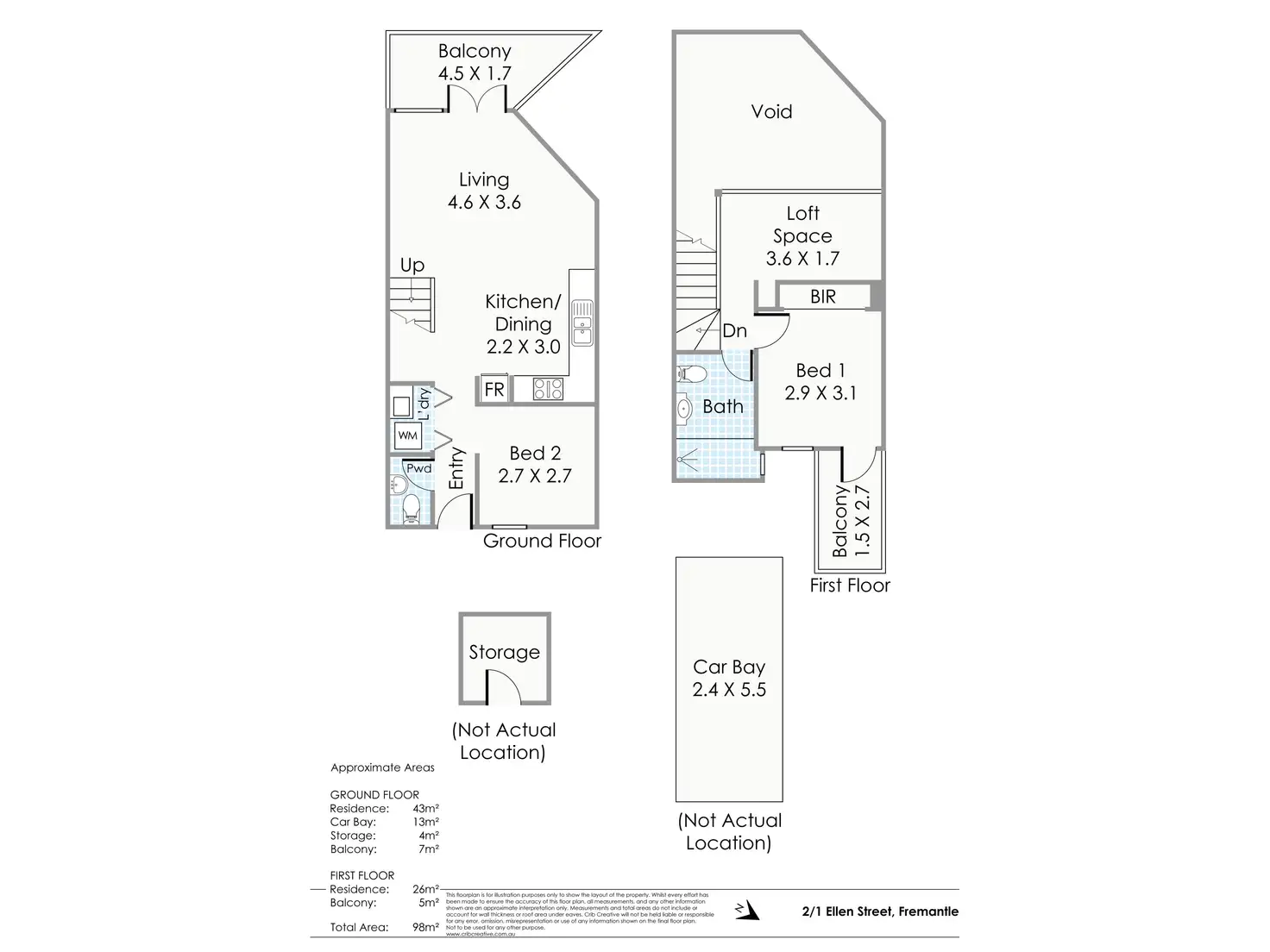2 Bed • 1 Bath • 1 Car • 98m²