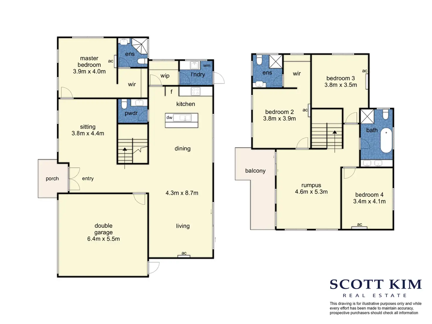 * Four spacious bedrooms, including two master suites (upstairs and downstairs), each with its own ensuite and walk-in robe, ideal for multigenerational living or guest accommodation.