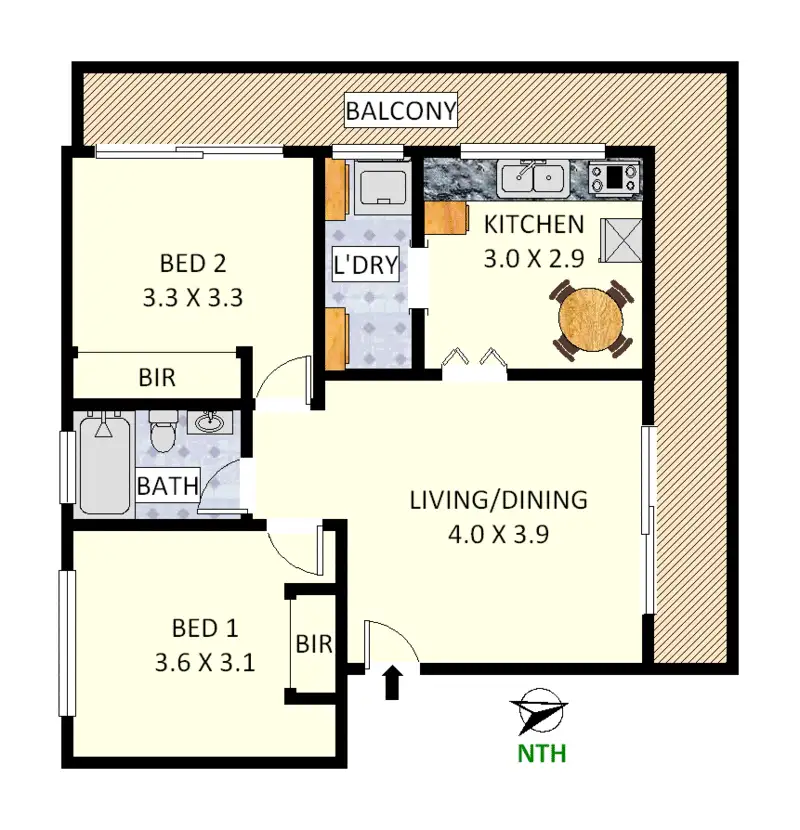 2 Bed • 1 Bath • 1 Car • 102m²