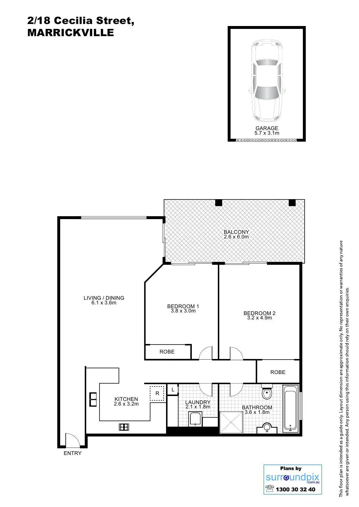 2 Bed • 1 Bath • 1 Car • 109m²