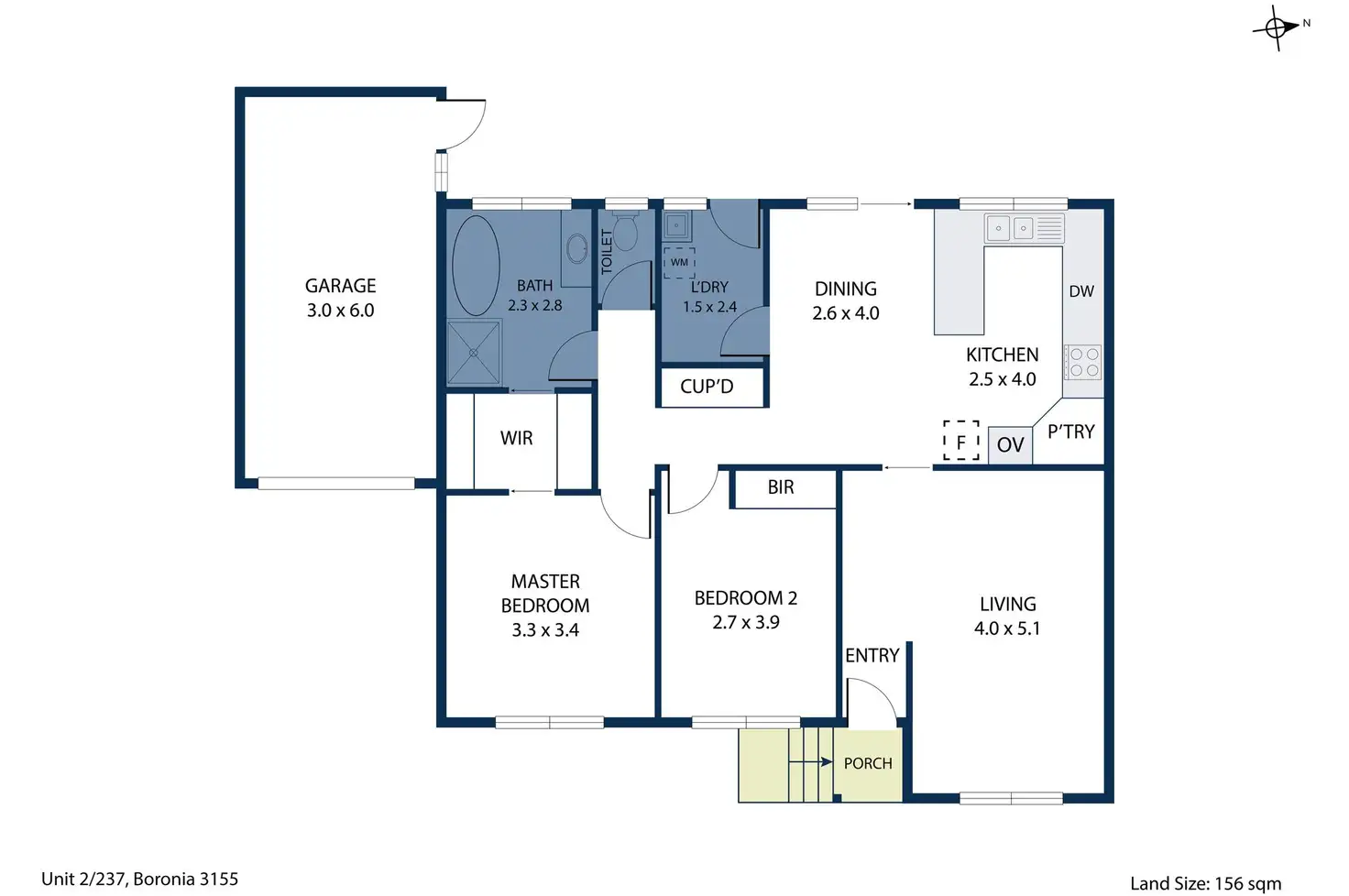 2 Bed • 1 Bath • 1 Car • 156m²