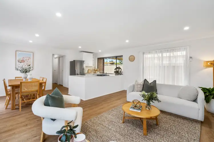 With split system heating and cooling, comfort is assured year-round. The home offers three spacious bedrooms, two with built-in robes, and a laundry with rear access and plenty of storage. Outside, a covered paved entertaining area adds to the property's appeal, providing a stylish space for outdoor entertainment.