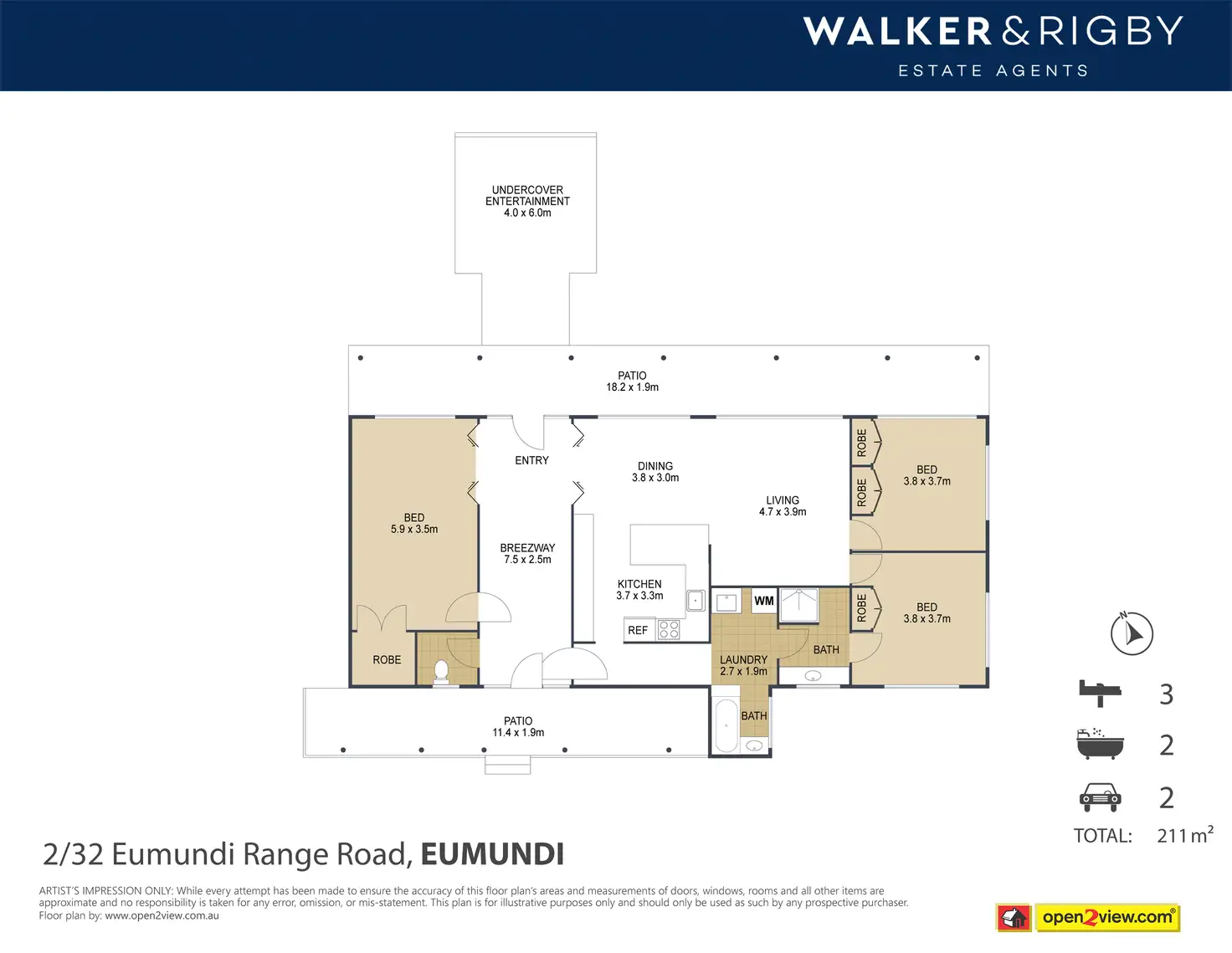 3 Bed • 2 Bath • 2 Car • 19700m²