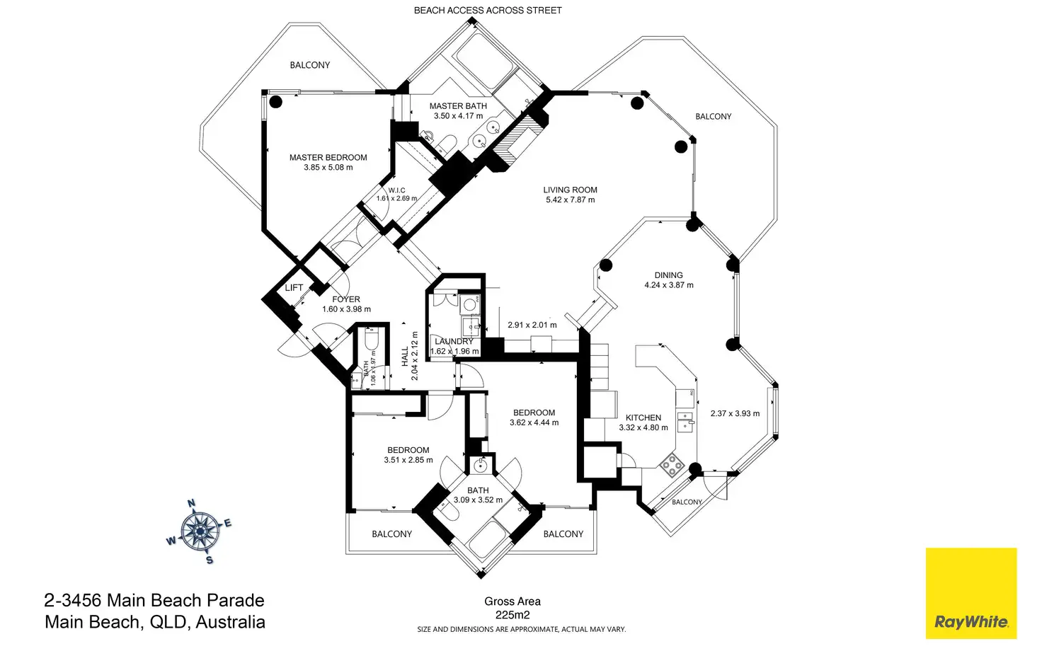 Approximately 225m2 of total living space, consisting of 185m2 internally and 40m2 entertaining or relaxing balconies. In addition to the 225m2 of living space, the apartment
