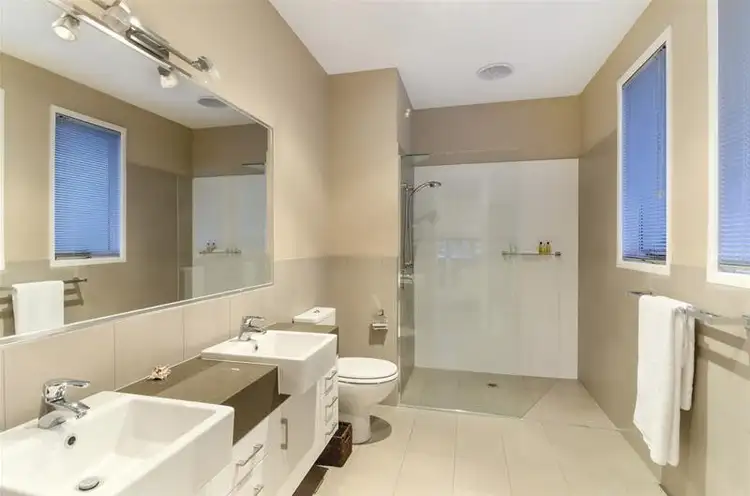 The main bathroom also with Caesar stone vanity tops ,spa bath and separate toilet.