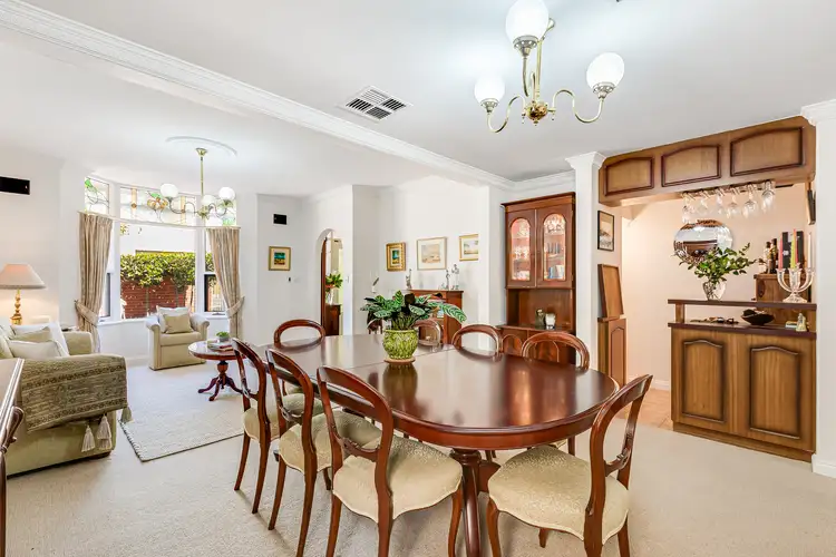 Behind high, brick fencing and tiled portico, enter to a light-filled formal lounge and dining of surprising spaciousness, while the timber-clad kitchen enjoys a casual meals and living zone to keep the resident chef in good company as you wine and dine friends or whip-up delicious mid-week meals. Combining for an elegant footprint of effortless entertaining and remarkable relaxation, this open and airy hub headlined by bay windows with views to the outdoor living create an utterly charming atmosphere to your everyday.