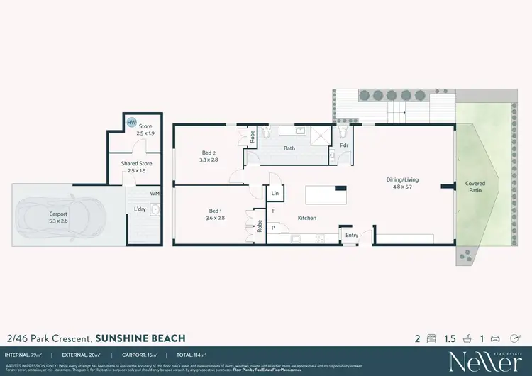 Comprising two bedrooms, fully tiled extra-large bathroom, powder room, stylish black and white kitchen, open plan living flowing out to north facing covered patio overlooking sun-drenched pool; plus, single carport with laundry facilities, extra storage and a separate lock-up storage room.