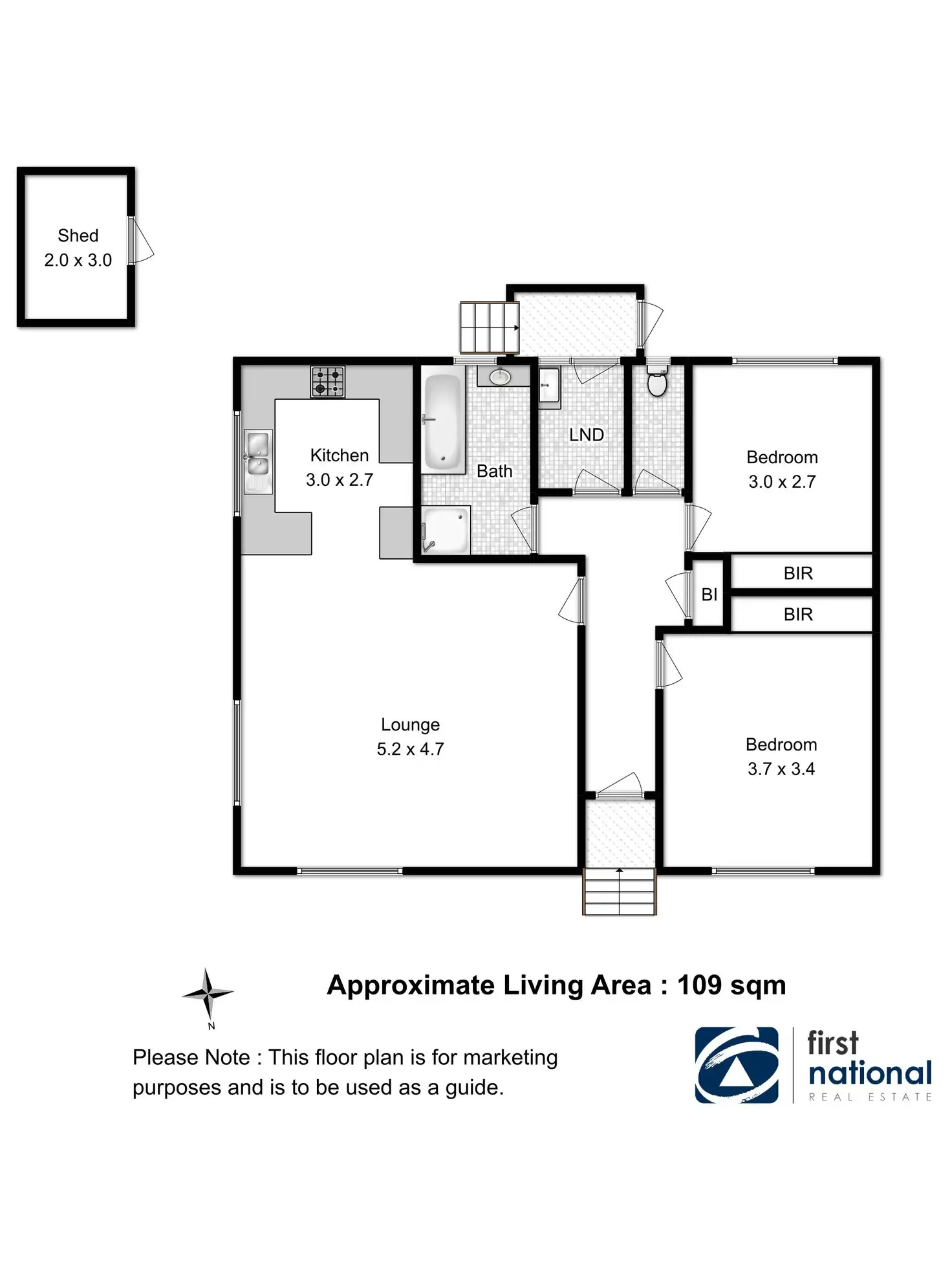 2 Bed • 1 Bath • 1 Car • 176m²