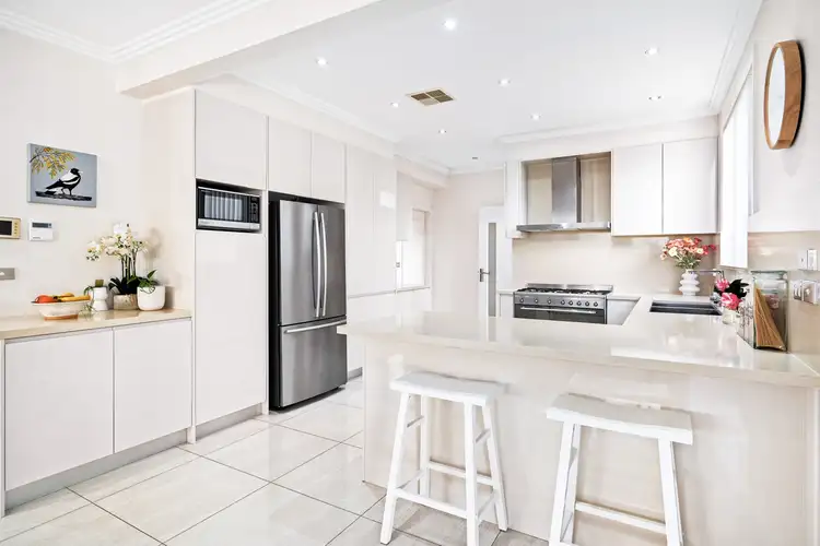 Bask in light-filled open-plan living, where the sleek stone kitchen - complete with a five-burner gas cooktop, 900mm oven, dishwasher, and breakfast bar - flows seamlessly to the family and dining zones. Step outside to the covered patio with ceiling fan and gas bayonet, overlooking a private courtyard with a mix of real lawn and astroturf - perfect for kids, pets, and weekend BBQs.