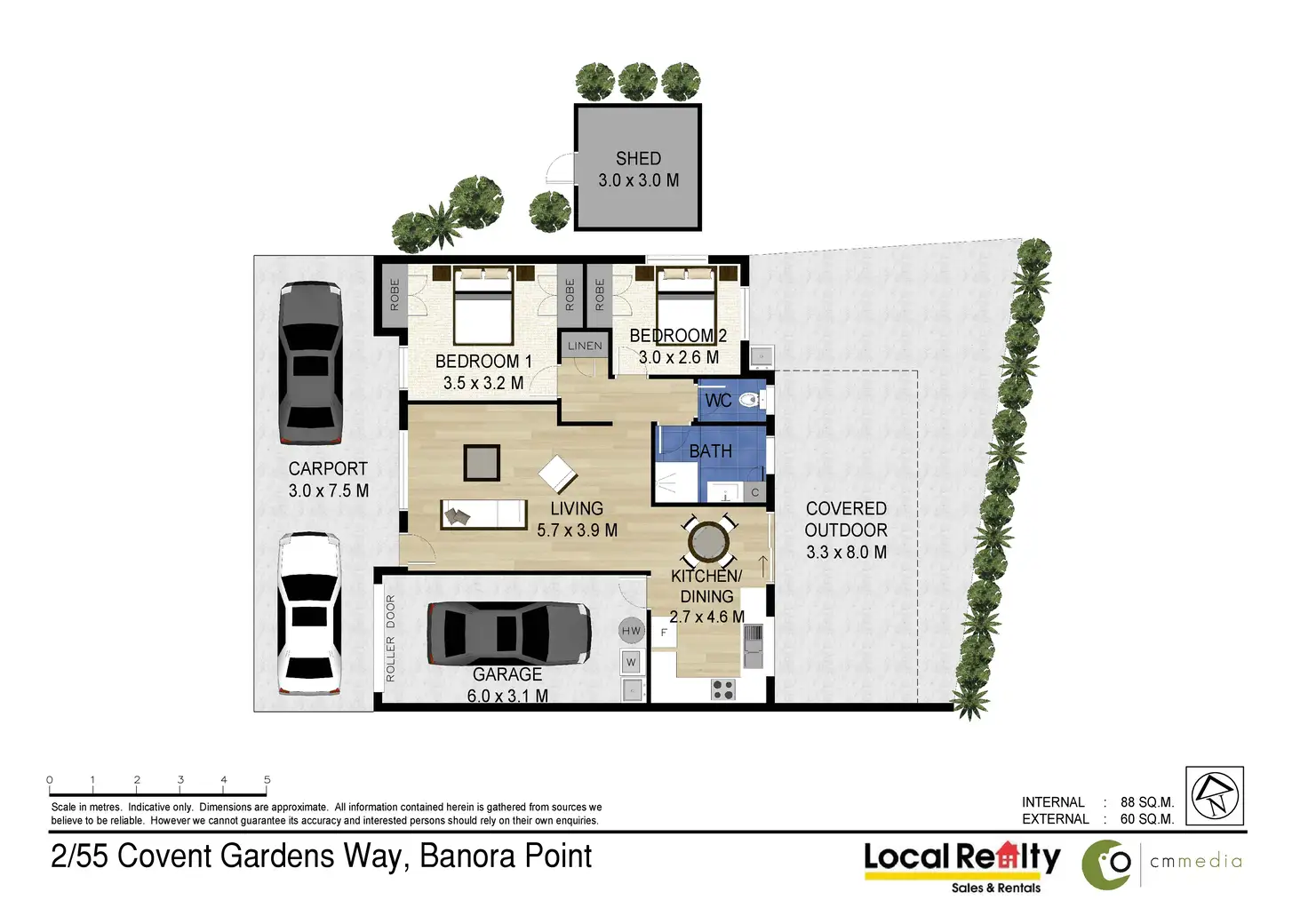 2 Bed • 1 Bath • 3 Car • 400m²