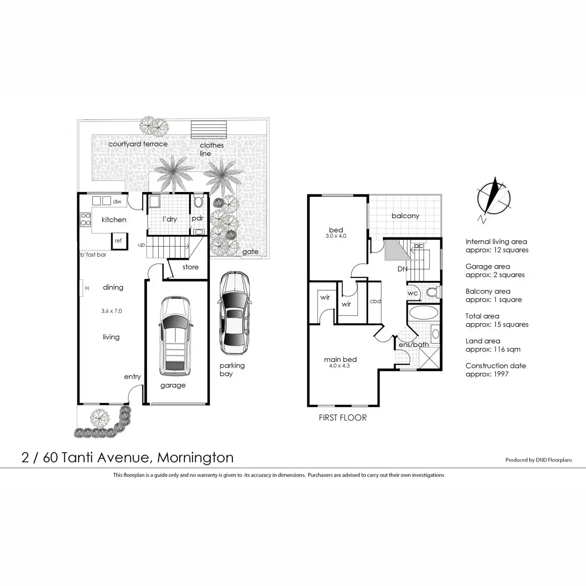 2 Bed • 1 Bath • 1 Car • 116m²