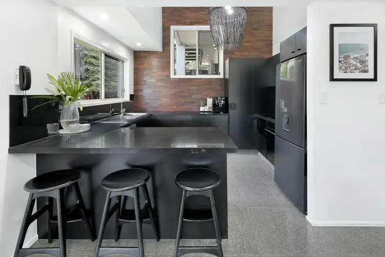 - Chefs kitchen includes new Ilve pyrolytic oven with 40mm stone veneer bench tops, large pantry, cedar timber feature wall + stunning St. Barts Jamaican fringe pendant light with high ceilings.