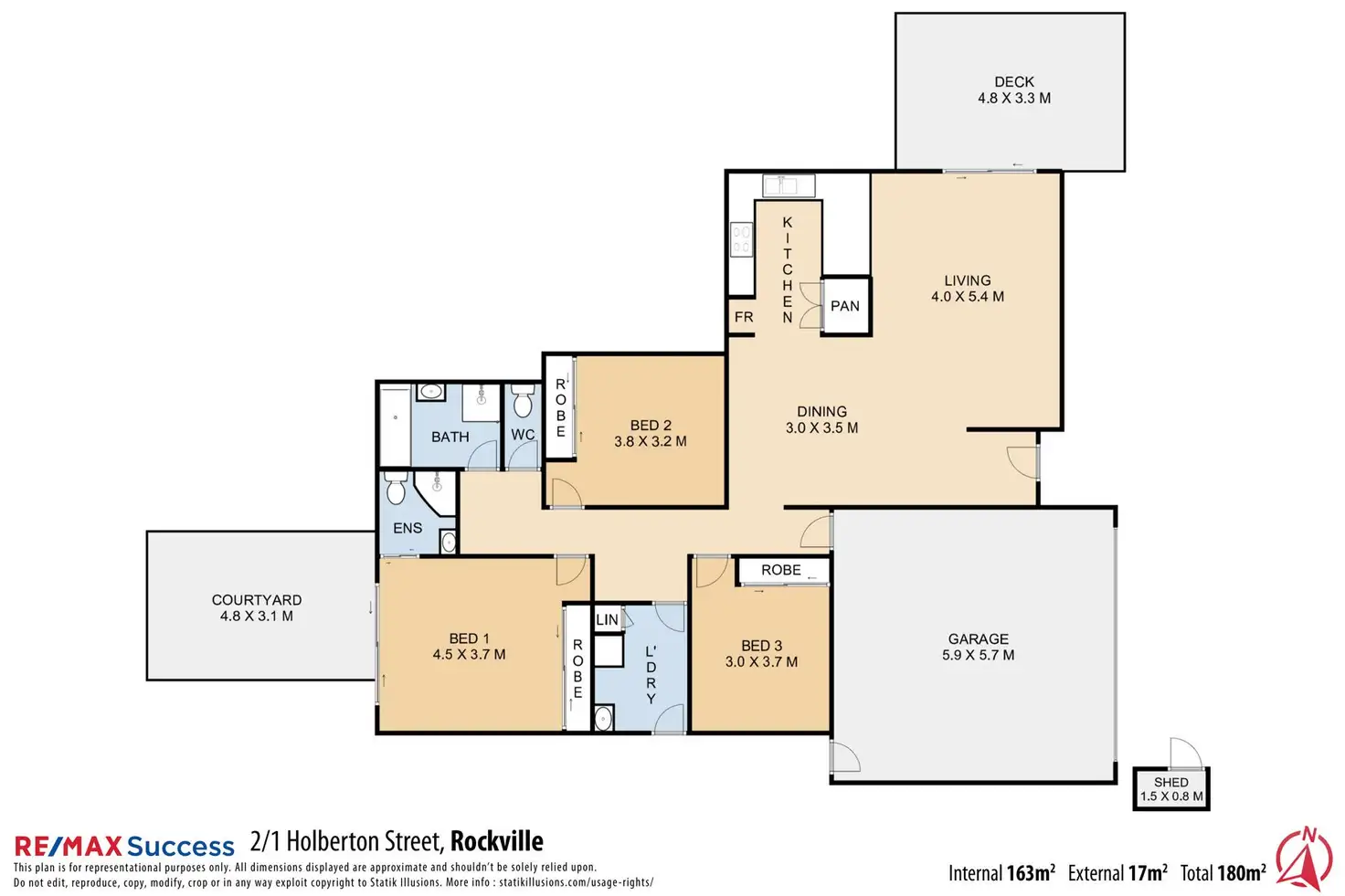 - Internal laundry with single wash tub and direct access to outdoors