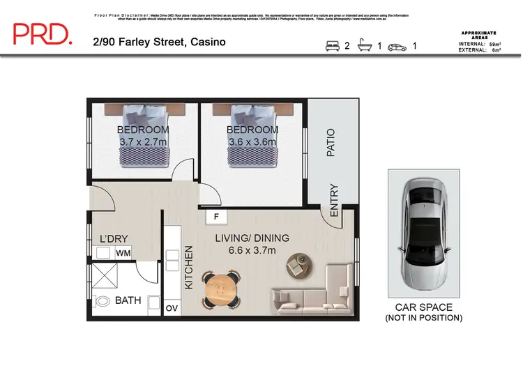 2 Bed • 1 Bath • 1 Car • 127m²