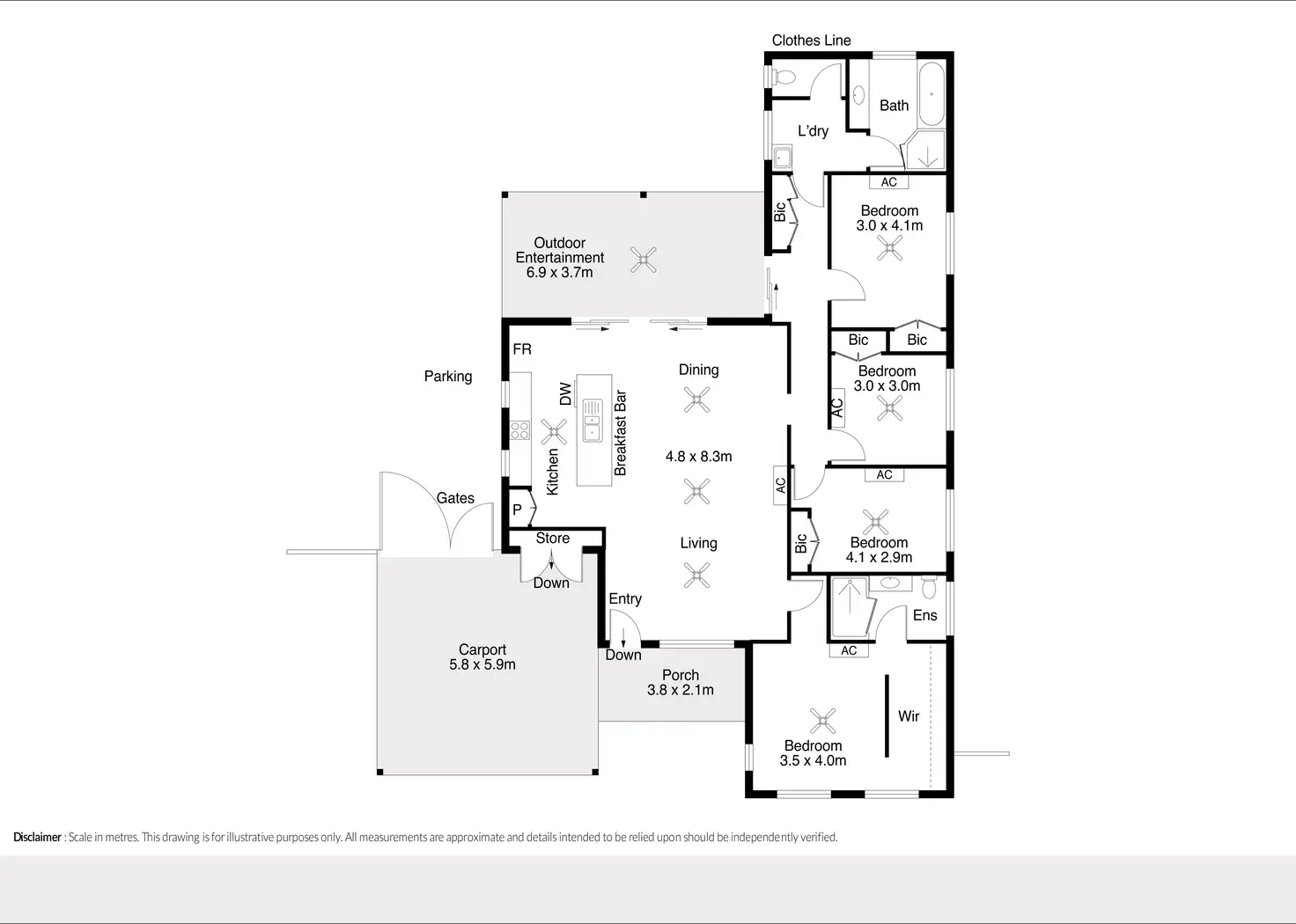 The rear bedroom zone is perfect for the kids with 3 large bedrooms all with built-in robes, air-con and ceiling fans, around a big main bathroom with separate shower and bath. Parents will love the peace and privacy of the huge front master suite complete with walk-through robe and private ensuite.