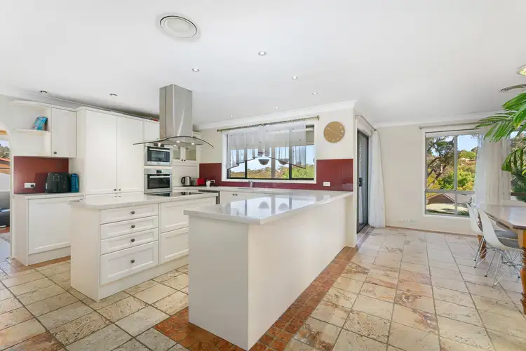 Its floor plan boasts, a sunken formal lounge room and living area, as well as a large kitchen that features stone benchtops along with modern stainless steel appliances, as well as a dining and family area. There's also a full-length balcony that takes in panoramic views across the huge yard.