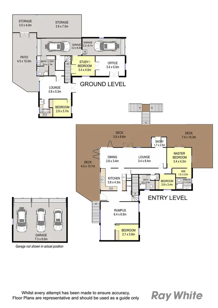 • Three car lock-up garage