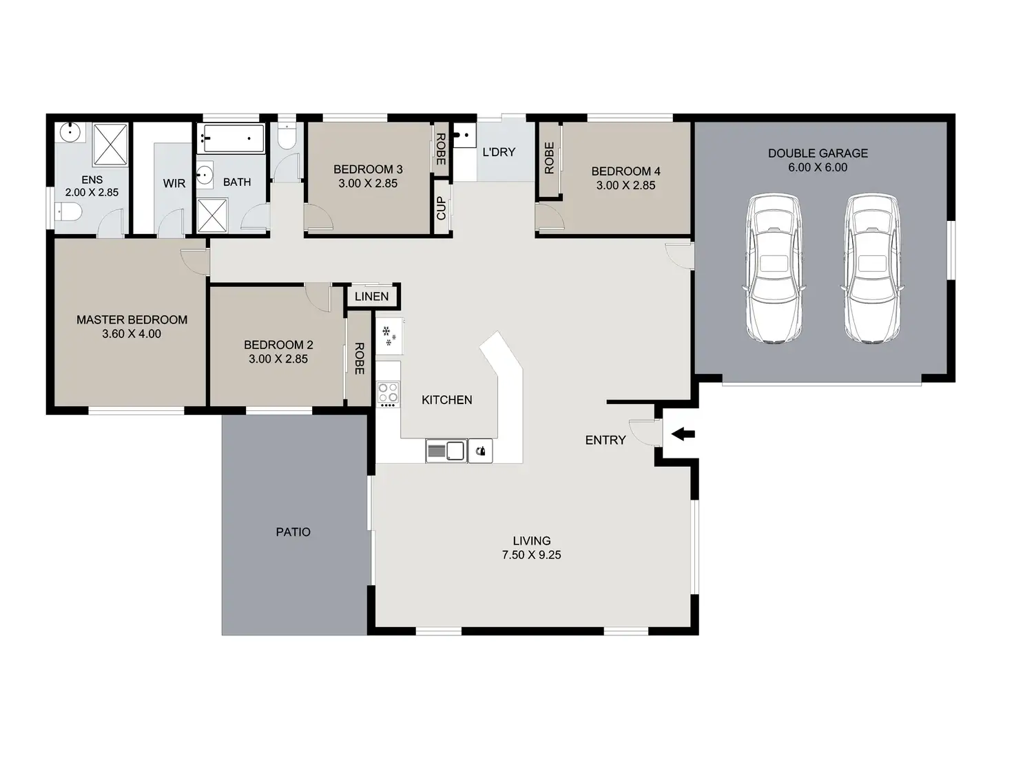 Lowset brick home with a tiled roof, 4 bedrooms, 2 bathrooms, open plan living & dining, spacious kitchen, massive second living area, undercover entertaining, a double garage, side access and a fully fenced backyard on a 696m2 block of land with a garden shed.