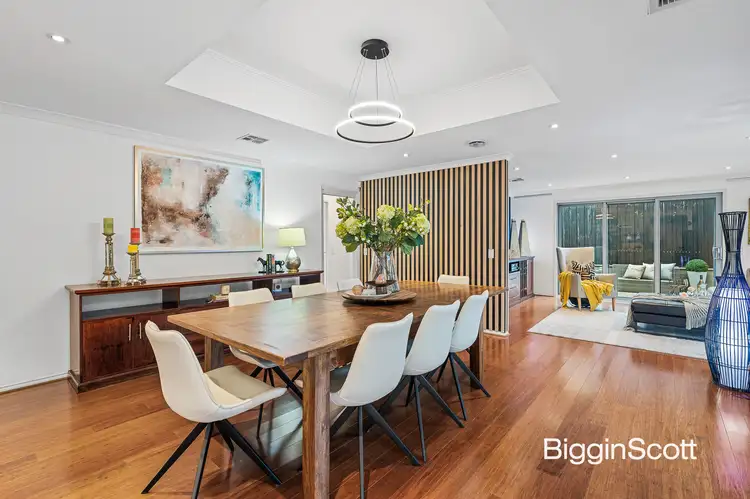 Snuggled in a serene court that's just steps away from the verdant expanses of Jells Park, the home is ready for you to move in and relax with the wide entry foyer providing the perfect introduction through to the carpeted formal lounge room, adorned with an elevated coffered ceiling, quality in-built entertainment unit and a large, double-glazed picture window that frames vistas of the gleaming pool.