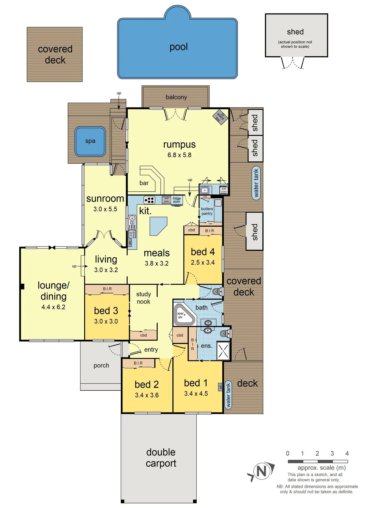 - Primed for all-seasons entertaining, a pitched roof rumpus room with built-in bar and wood log fireplace allows you to cosy up with guests in the cooler months. Or spill outside to a tranquil backyard oasis in the warmer months.