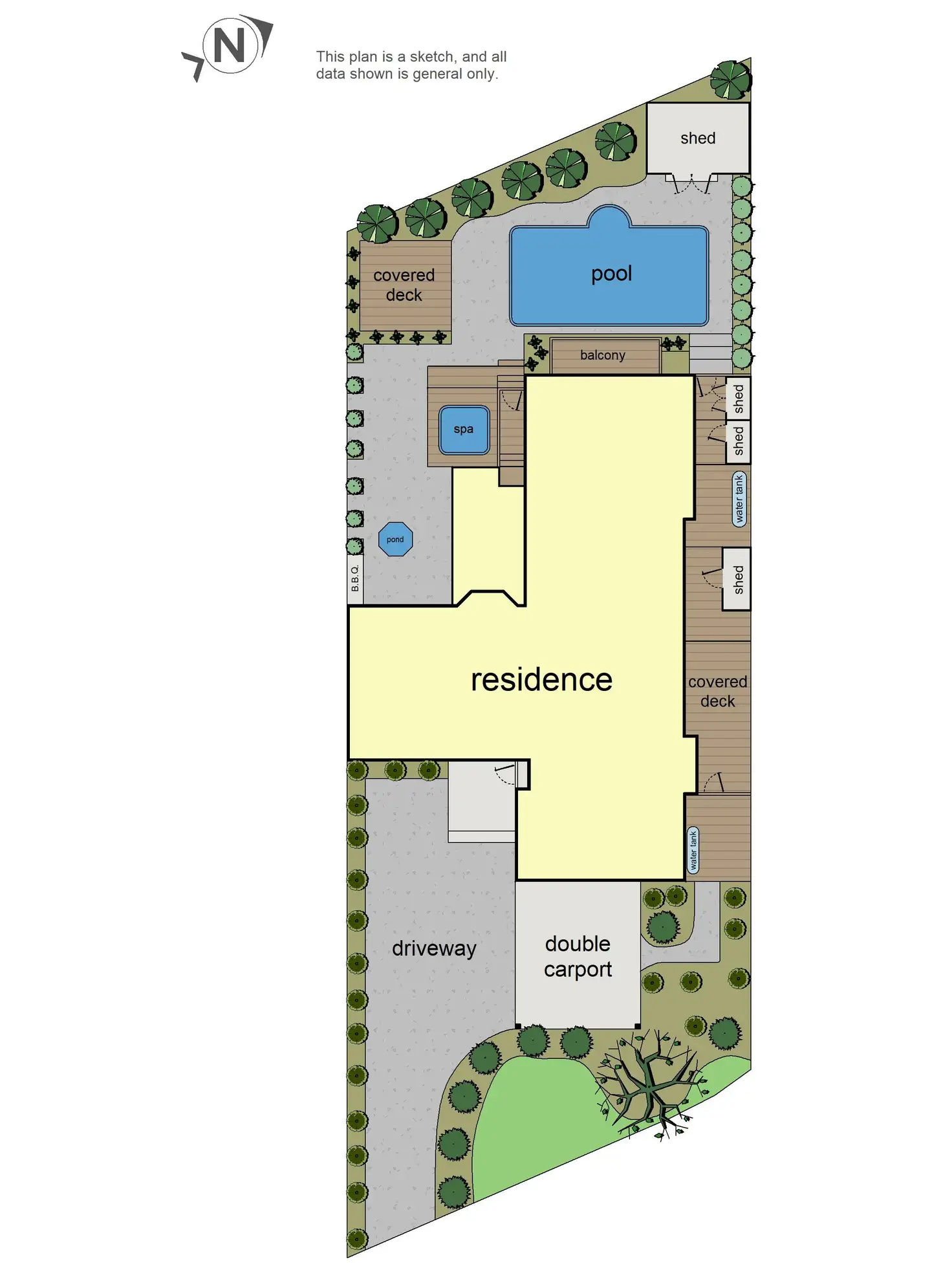 - Designed so you can recline, dine or sip cocktails by a heated swimming pool or covered 6-seater spa, it comprises a raised balcony, curtain-wrapped gazebo plus a paved courtyard with gas connected barbeque and water fountain.