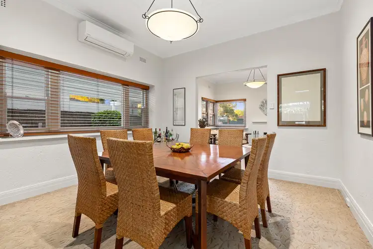 The list of special features is comprehensive. Take advantage of a large laundry with WC, a handy study alcove, extensive heating and cooling, alarm system, timber Venetian blinds, slate-tiled entrance, attic storage, and a remote-controlled garage with additional off-street parking. Built in 1931 and updated with an intuitive renovation, exquisite period details include ceiling roses, Tasmanian oak flooring, textured interior walls, delicate timber work throughout, towering ceilings, picture railings, open fireplaces, distinctive brickwork, and a stylised chimney.