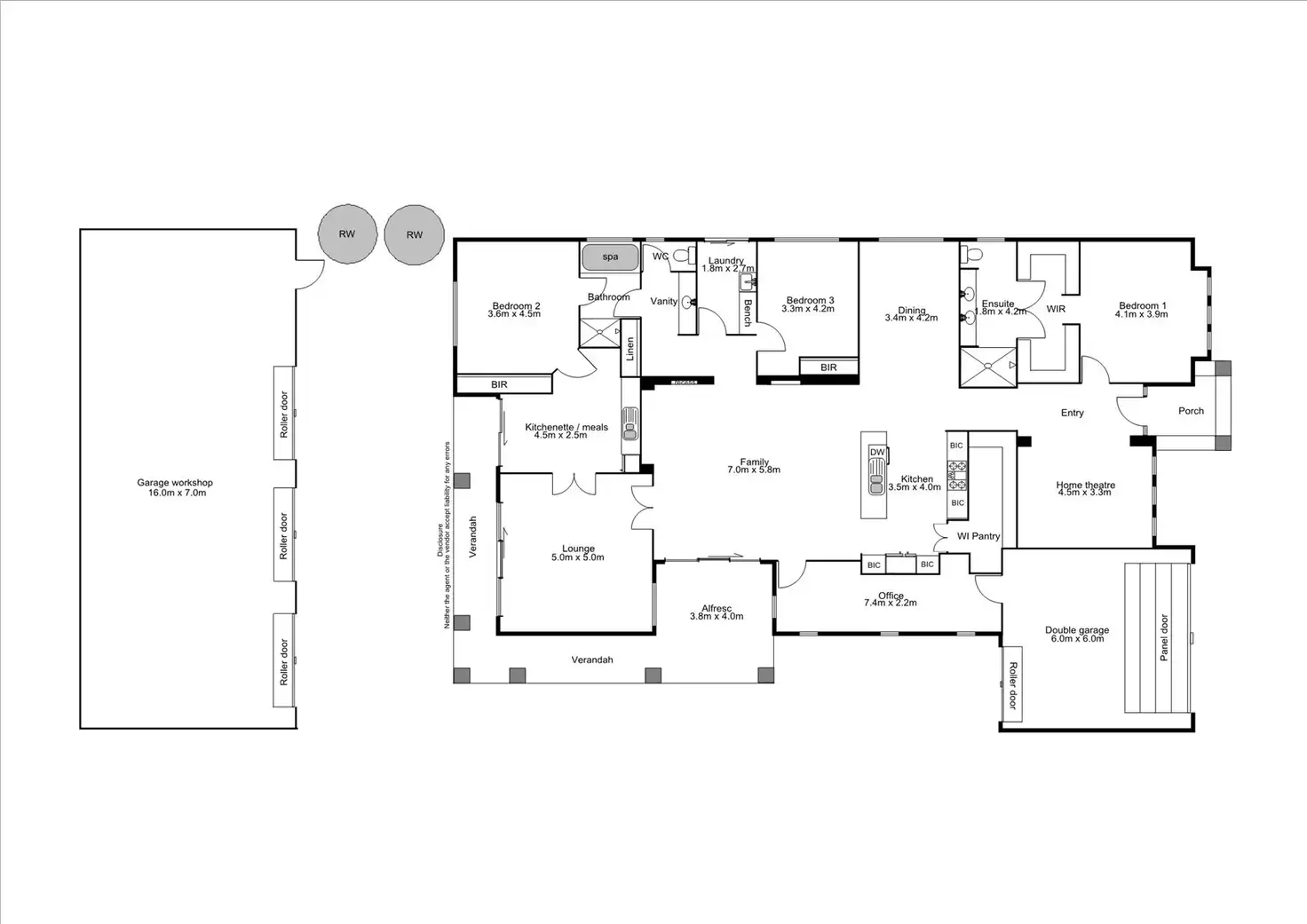 Internal access through the office/gym to the large double garage (UMR with panel lift door at front, roller door at rear) adds extra security.