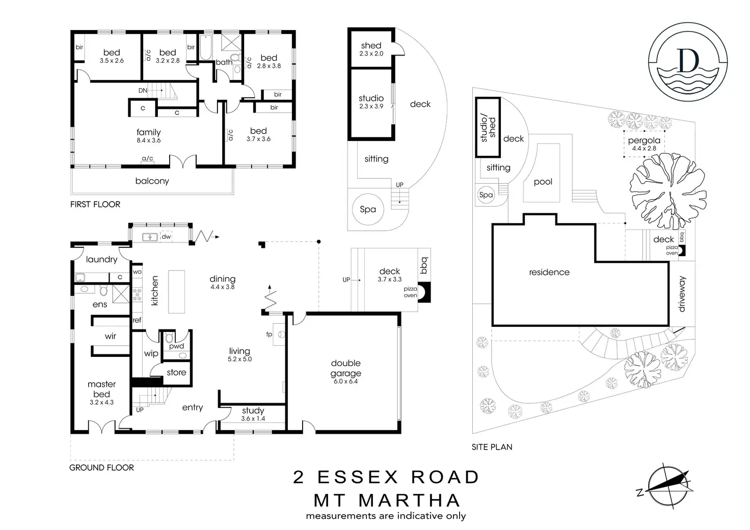 Corner timber bi-fold doors create a magnificent indoor/outdoor environment for all-encompassing entertaining, where BBQ dinners with wood-fired pizzas enhance the enjoyment of the incredible pool and spa pavilion amongst stunning gardens. An upstairs children's wing features wool carpets throughout a lounge retreat and four robed bedrooms with fans and split-system comfort, plus a balcony and a family bathroom, while the idyllic master bedroom is wonderfully zoned on the lower floor, complete with a fitted dressing room and a lavish rainfall shower ensuite.